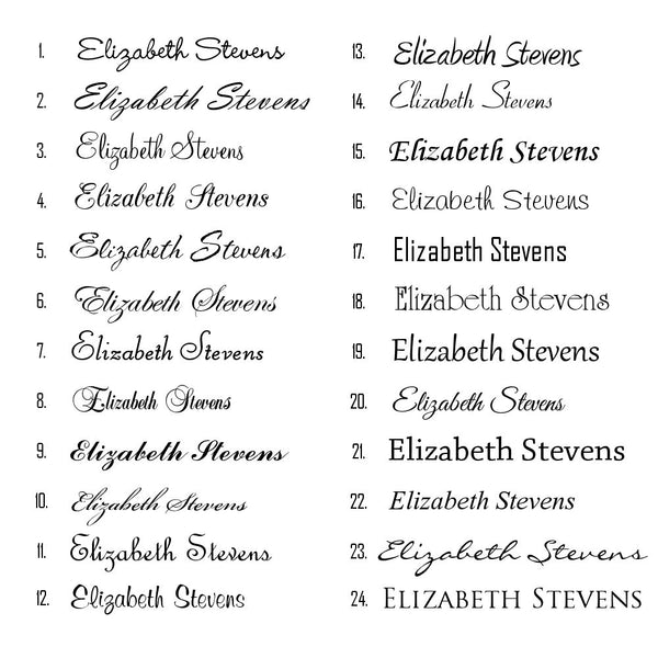 Type the name and address by each line exactly how you want it to appear on the labels in the personalization box above. Please check for spelling, etc. as I copy and paste your information. You can choose the font to use for the name but the address will be the font used in the example picture.